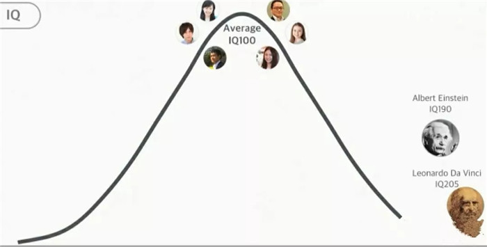 上面這張圖,人類正常的智商(IQ),都在100左右,罕見的天才愛因斯坦190,達(dá)芬奇205。那么請(qǐng)問,未來AI的智商,會(huì)是多少呢?